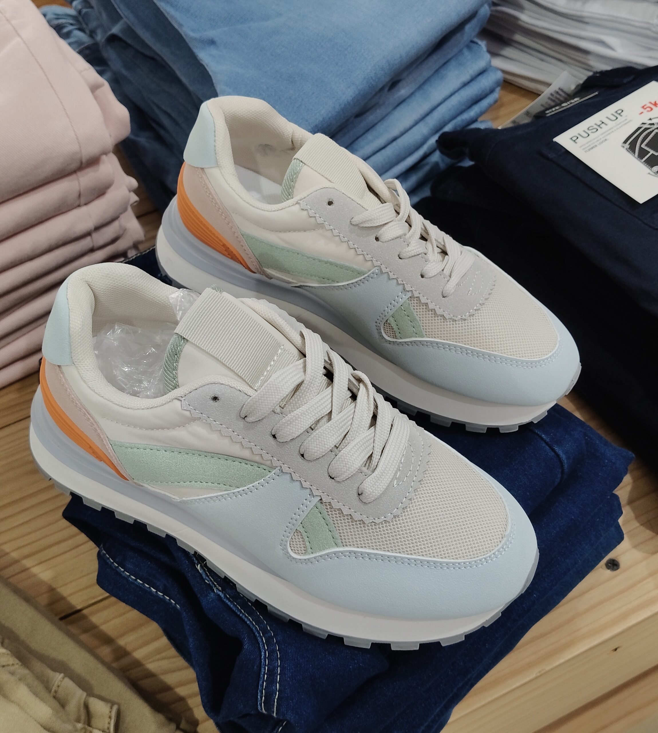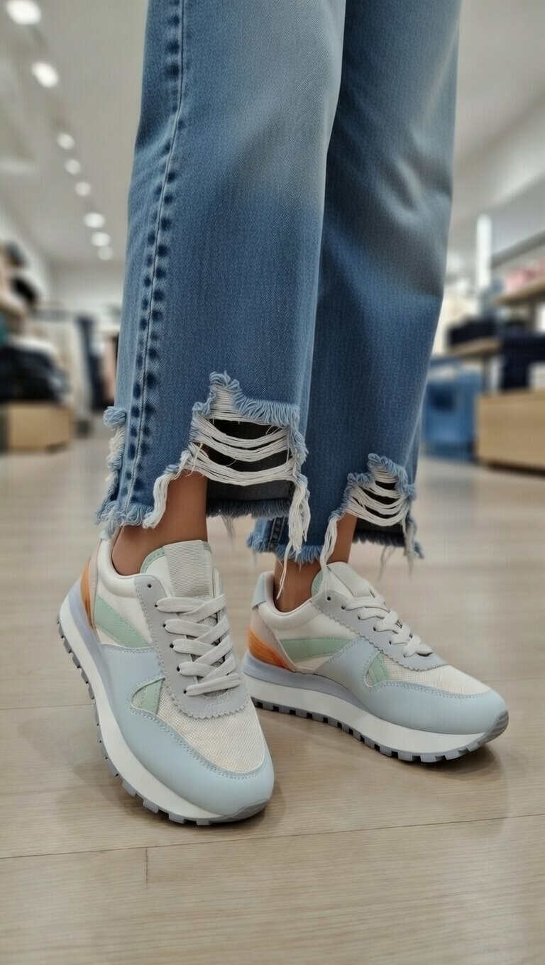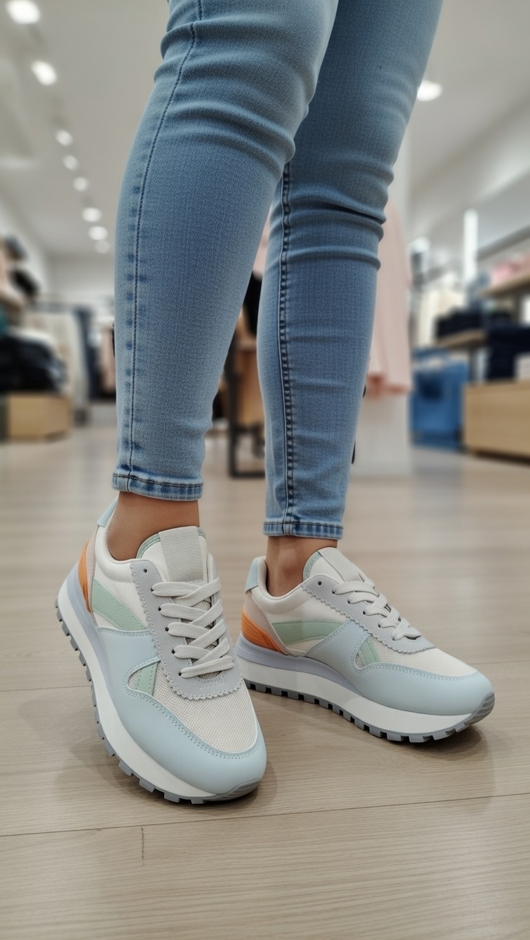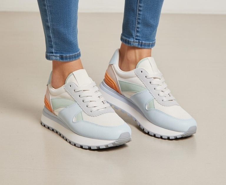 Estas zapatillas de mujer en tonos pastel son perfectas para aportar un toque suave y moderno a cualquier look. Su diseño con cordones permite un ajuste cómodo al pie, mientras que su estilo casual las hace ideales para usar a diario.